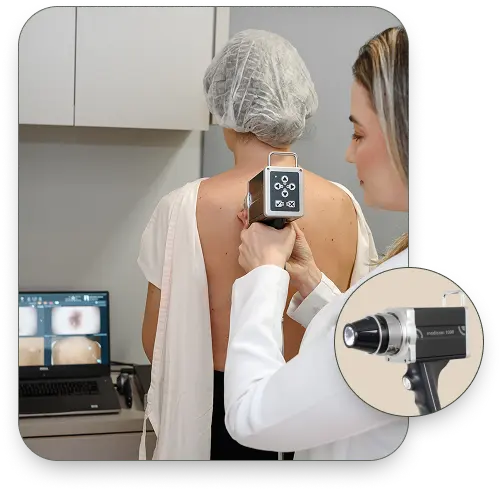 Considero o FotoFinder a primeira linha de defesa contra o câncer de pele. Ele é muito mais do que um equipamento. Com ele, consigo ir além do que o olho humano pode ver.